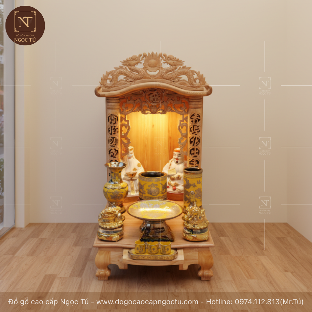 - Thiết kế mở, dễ dàng đặt tượng Thần Tài – Thổ Địa, bát hương và các vật phẩm phong thủy khác